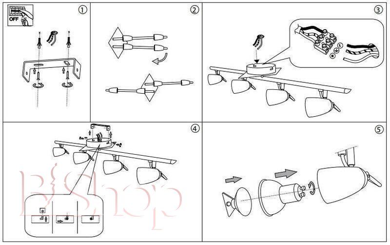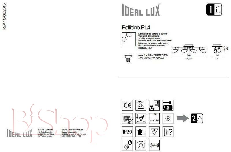 Кількість ламп: 4. Тип цоколя: GU10. Висота (див): 15. Ширина (див): 23. Потужність лампи (Вт): 50. Довжина (див): 70.