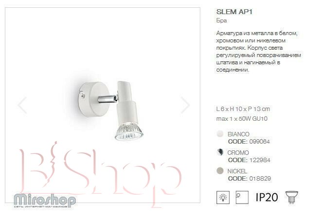 Спот Ideal Lux SLEM AP1 BIANCO (099064) (93758)
