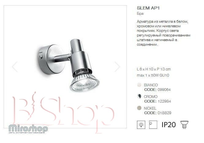 Спот Ideal Lux SLEM AP1 NICKEL (018829)