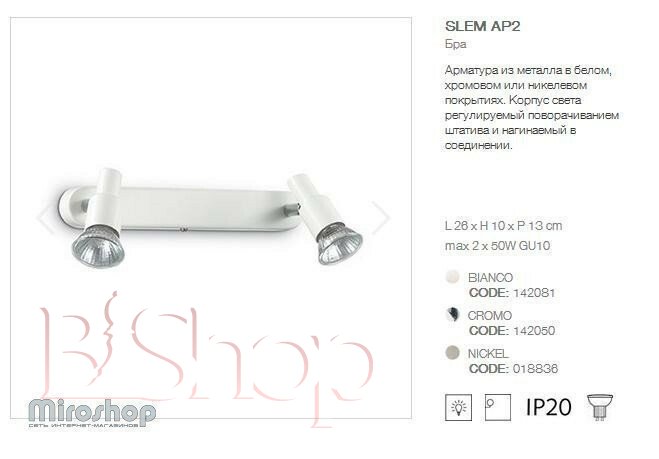 Спот Ideal Lux SLEM AP2 BIANCO (142081) (96725)