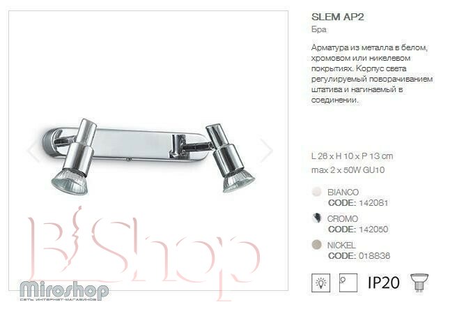 Спот Ideal Lux SLEM AP2 CROMO (142050) (96703)