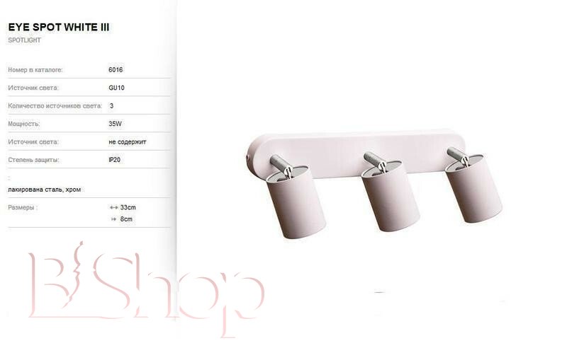 Кількість ламп: 3. Тип цоколя: GU10. Ширина (див): 33. Глибина (див): 8. Потужність лампи (Вт): 35.