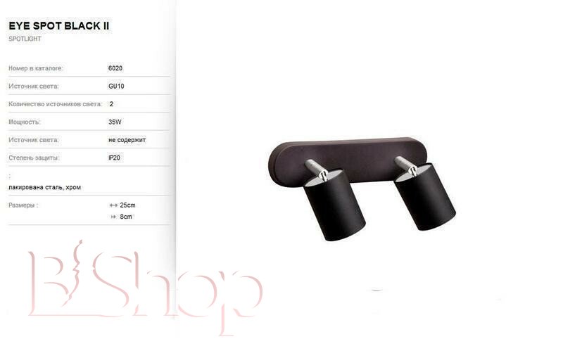 Кількість ламп: 2. Тип цоколя: GU10. Ширина (див): 25. Глибина (див): 8. Потужність лампи (Вт): 35.
