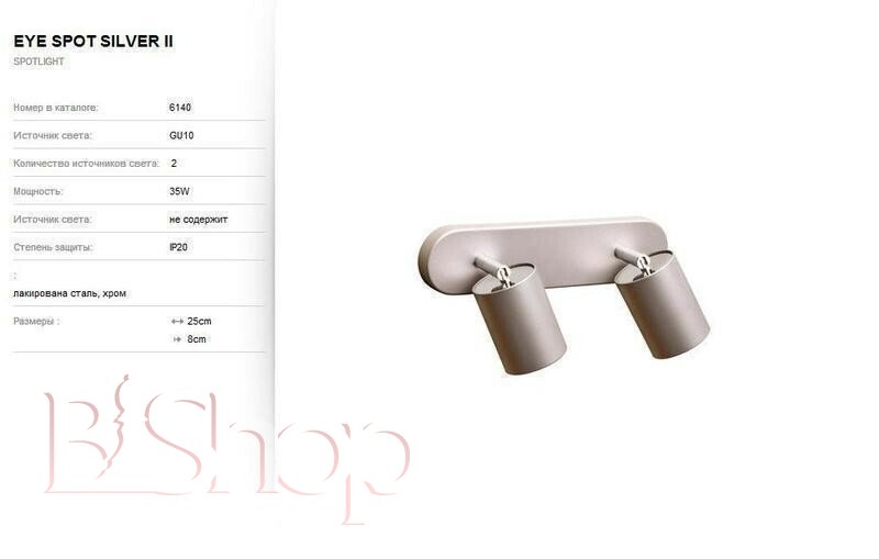 Кількість ламп: 2. Тип цоколя: GU10. Ширина (див): 25. Глибина (див): 8. Потужність лампи (Вт): 35.