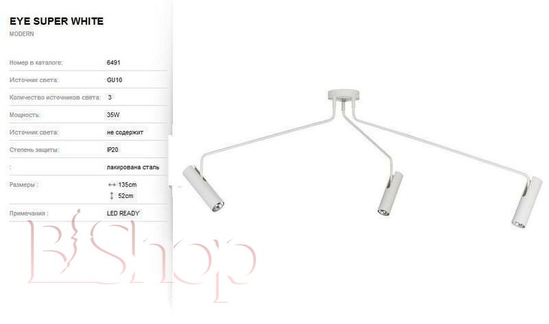 Кількість ламп: 3. Тип цоколя: GU10. Висота (див): 52. Ширина (див): 135. Потужність лампи (Вт): 35.