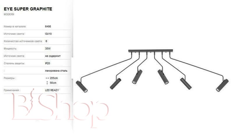 Кількість ламп: 6. Тип цоколя: GU10. Висота (див): 56. Ширина (див): 205. Потужність лампи (Вт): 35.