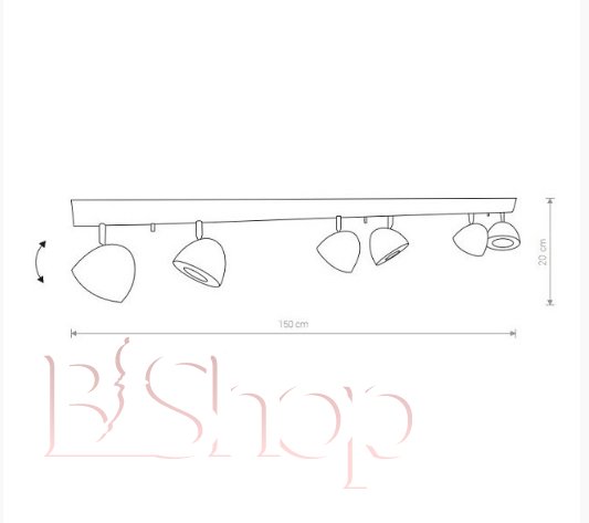 Кількість ламп: 6. Тип цоколя: GU10. Висота (див): 20. Потужність лампи (Вт): 75. Довжина (див): 150.