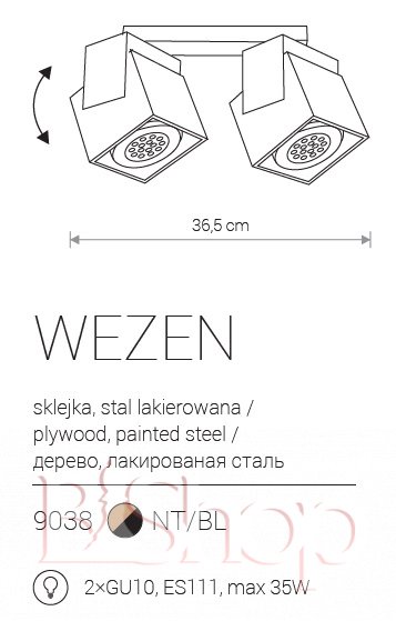 Кількість ламп: 2. Тип цоколя: GU10. Висота (див): 21. Потужність лампи (Вт): 35. Довжина (див): 36.5.
