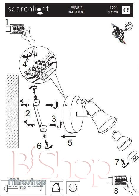 Кількість ламп: 1. Тип цоколя: GU10. Висота (див): 10. Глибина (див): 12. Потужність лампи (Вт): 50. Довжина (див): 12.