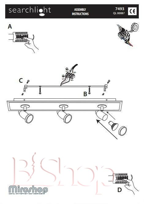 Кількість ламп: 3. Тип цоколя: GU10. Висота (див): 12. Потужність лампи (Вт): 50. Діаметр (див): 9. Довжина (див): 46.