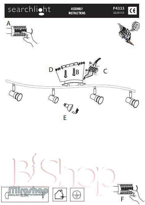 Кількість ламп: 4. Тип цоколя: GU10. Висота (див): 16. Потужність лампи (Вт): 50. Довжина (див): 90.
