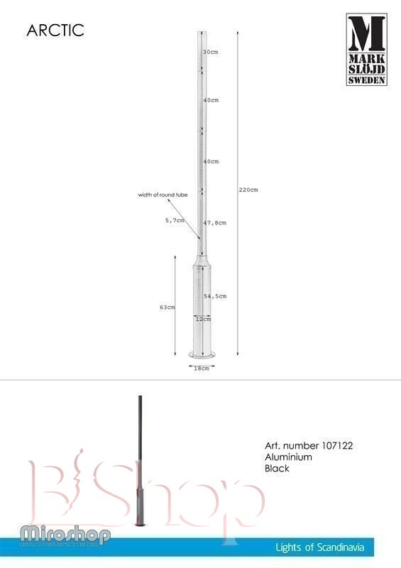 Кількість ламп: 1. Тип цоколя: E27. Висота (див): 220. Потужність лампи (Вт): 100. Діаметр (див): 18.