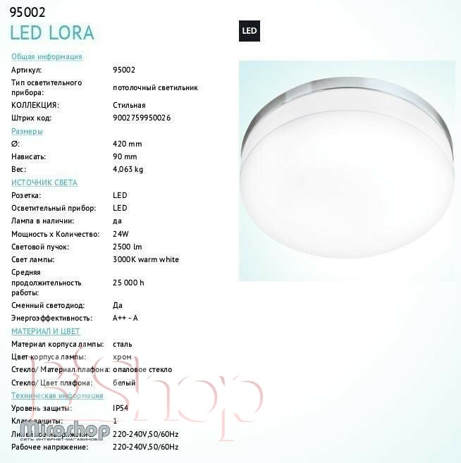 Кількість ламп: 1. Тип цоколя: LED. Висота (див): 9. Потужність лампи (Вт): 24. Діаметр (див): 42.