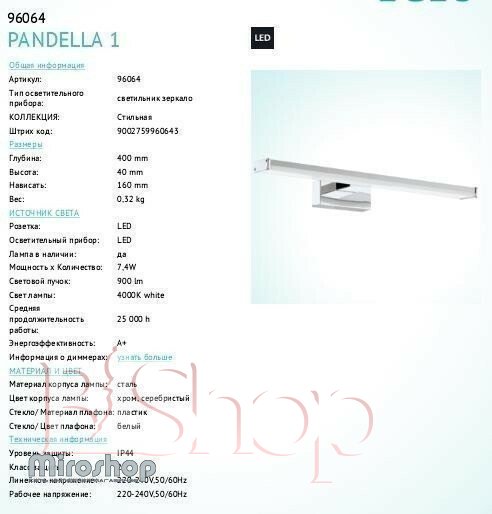 - Категорія товару: Світильники для ванною
