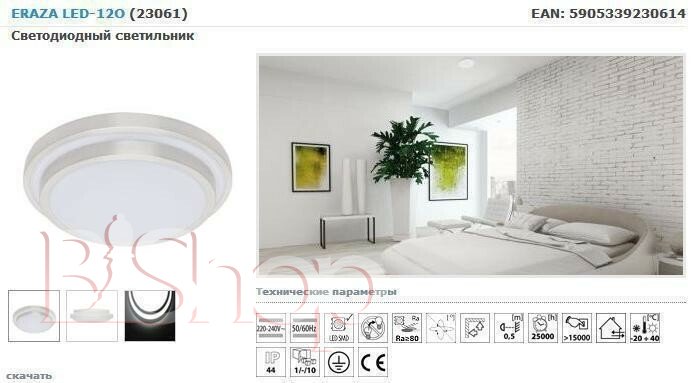 Кількість ламп: 1. Тип цоколя: LED. Висота (див): 10. Потужність лампи (Вт): 12. Діаметр (див): 35.
