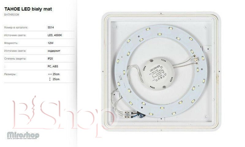 Кількість ламп: 1. Тип цоколя: LED. Висота (див): 25. Ширина (див): 25. Потужність лампи (Вт): 12.