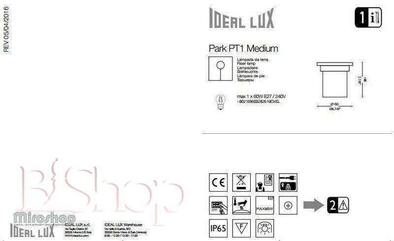 Світильник Ideal Lux PARK PT1 ROUND MEDIUM (032825) (48795)