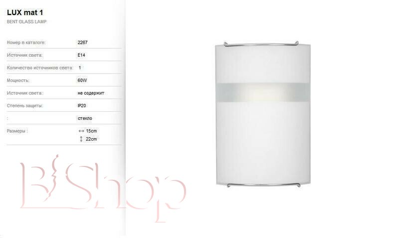 Кількість ламп: 1. Тип цоколя: E14. Висота (див): 22. Ширина (див): 15. Потужність лампи (Вт): 60. Довжина (див): 15.