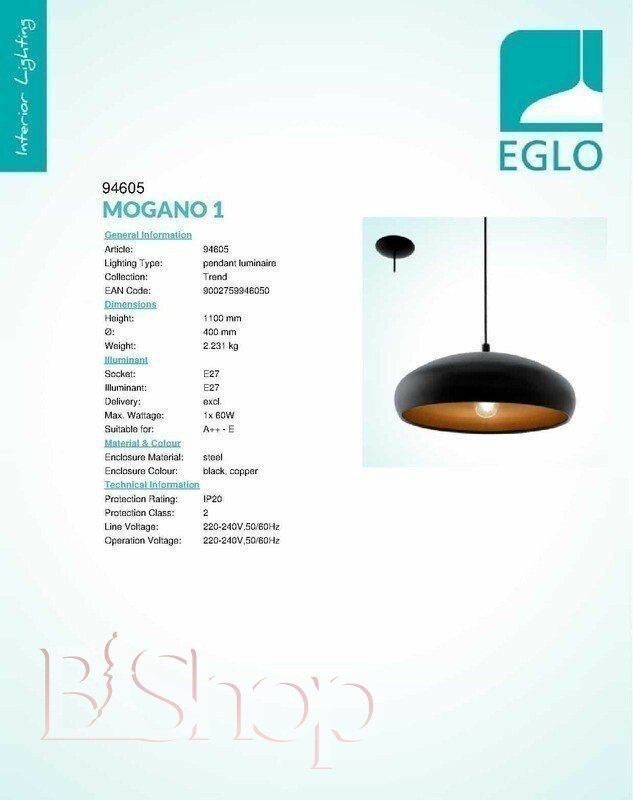 Кількість ламп: 1. Тип цоколя: E27. Висота (див): 110. Потужність лампи (Вт): 60. Діаметр (див): 40.