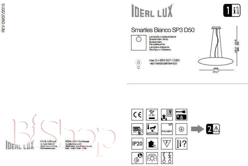 Світильник підвісний Ideal Lux SMARTIES BIANCO SP3 D50 (032009) (48928)