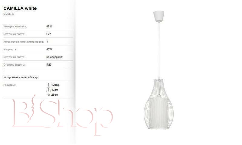 Світильник підвісний Nowodvorski 4611 CAMILLA White (57693)