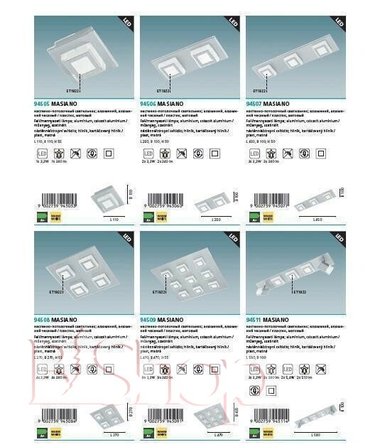 Кількість ламп: 9. Тип цоколя: LED. Висота (див): 5.5. Ширина (див): 47. Потужність лампи (Вт): 3.3. Довжина (див): 47.