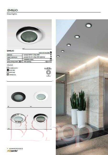 Кількість ламп: 1. Тип цоколя: GU10. Висота (див): 5. Потужність лампи (Вт): 50. Діаметр (див): 9. Розмір урізного отвору (см): 7.