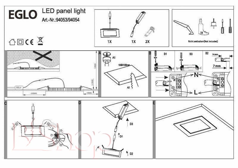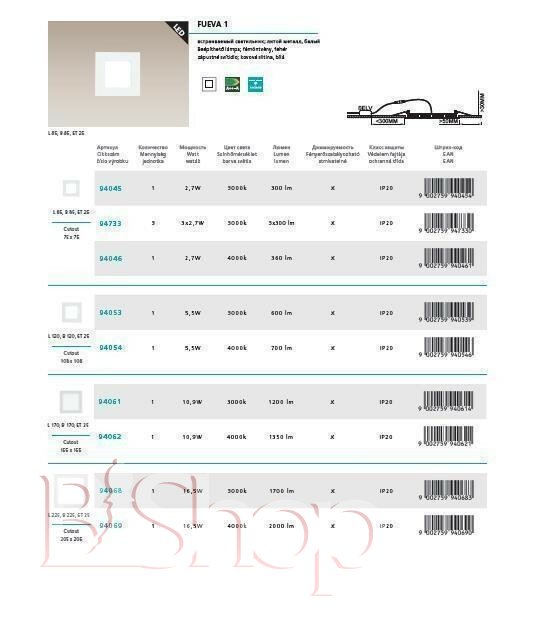 Кількість ламп: 1. Тип цоколя: LED. Ширина (див): 12. Потужність лампи (Вт): 6. Довжина (див): 12. Глибина урізання (див): 2.5.