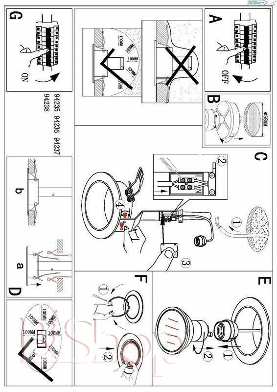 Кількість ламп: 3. Тип цоколя: GU10. Потужність лампи (Вт): 5. Діаметр (див): 8.7. Глибина урізання (див): 8.8. Розмір урізного отвору (див): 6.8.