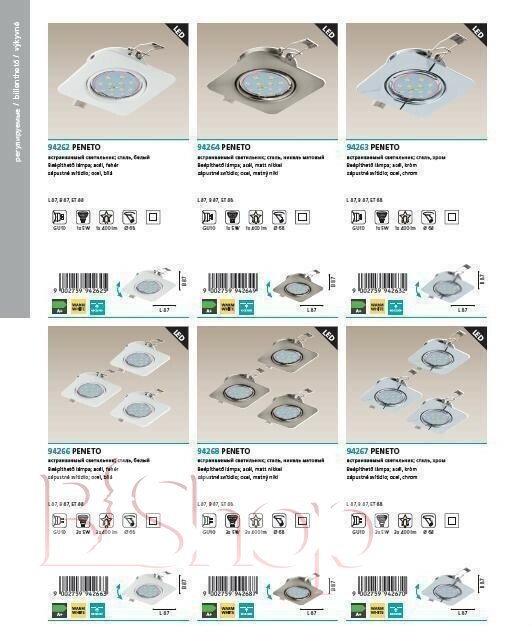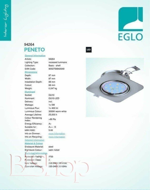 Кількість ламп: 1. Тип цоколя: GU10. Ширина (див): 8.7. Потужність лампи (Вт): 5. Довжина (див): 8.7. Глибина урізання (див): 8.8. Розмір урізного отвору (див): 6.8.