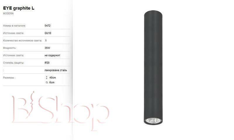 Кількість ламп: 1. Тип цоколя: GU10. Висота (див): 40. Потужність лампи (Вт): 35. Діаметр (див): 6.