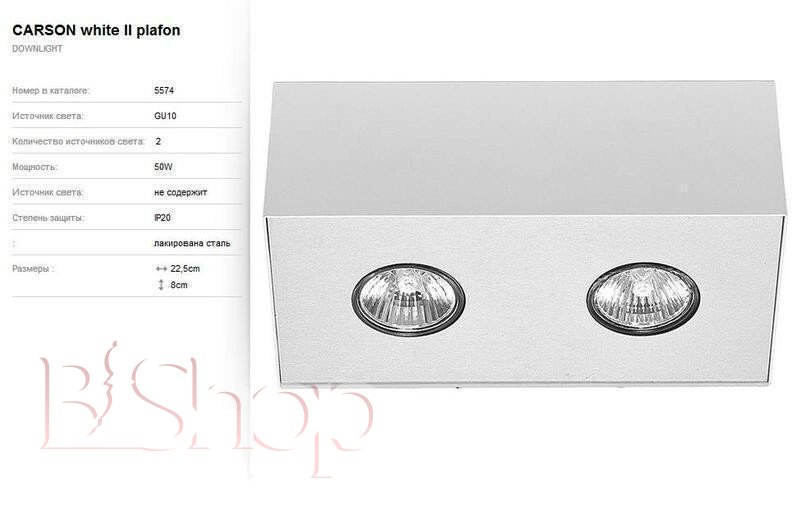 Кількість ламп: 2. Тип цоколя: GU10. Висота (див): 8. Ширина (див): 12. Потужність лампи (Вт): 50. Довжина (див): 22.5.