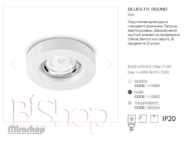 Точковий світильник Ideal Lux BLUES FI1 ROUND BIANCO (113999) (94244)