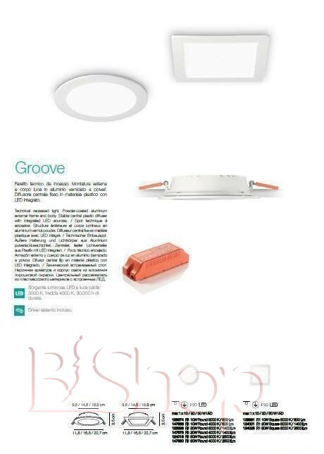 Точковий світильник Ideal Lux GROOVE FI1 20W SQUARE 3000K (124001) (94257)