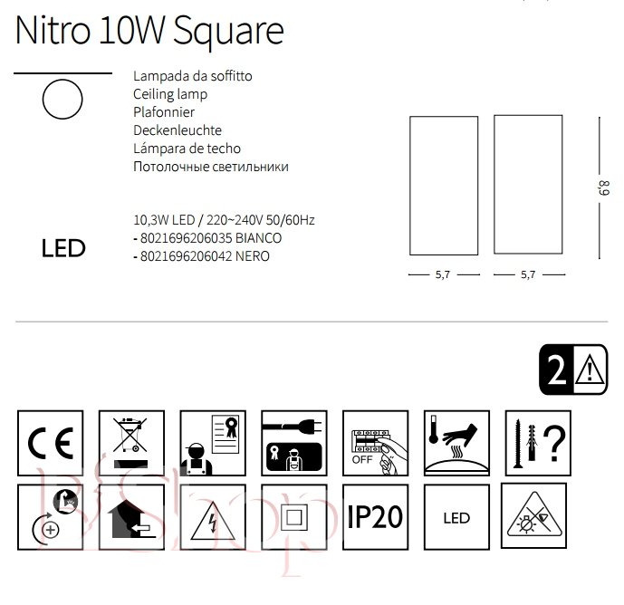 Точковий світильник Ideal Lux NITRO 10W SQUARE BIANCO (206035) (22935)