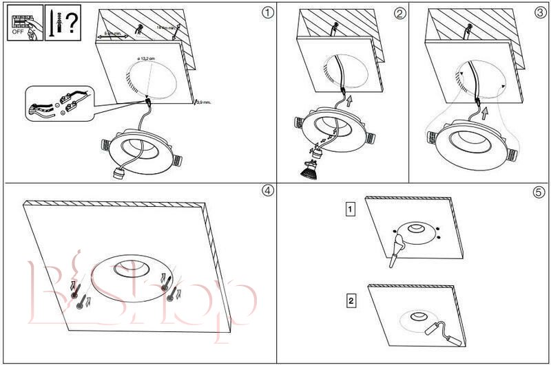 Кількість ламп: 1. Тип цоколя: GU10. Висота (див): 4.5. Потужність лампи (Вт): 35. Діаметр (див): 13.