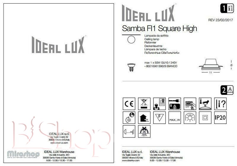 Точковий світильник Ideal Lux SAMBA FI1 SQUARE (139029) (94273)