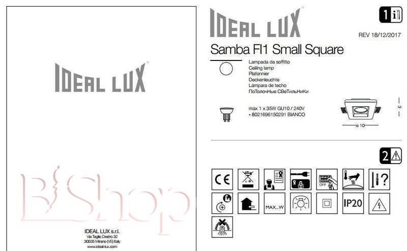 Точковий світильник Ideal Lux SAMBA FI1 SQUARE SMALL (150291) (13279)