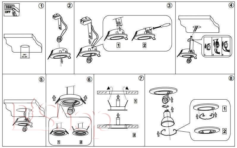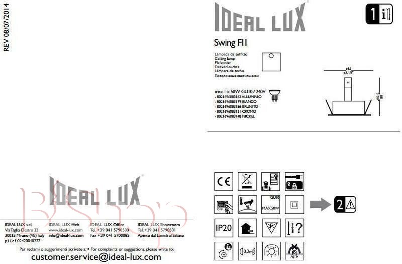 Кількість ламп: 1. Тип цоколя: GU10. Висота (див): 8.5. Потужність лампи (Вт): 50. Діаметр (див): 8.2.