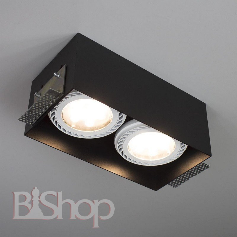 Кількість ламп: 2. Тип цоколя: GU10. Ширина (см): 12.5. Потужність лампи (Вт): 50. Довжина (див): 24. Глибина урізання (див): 11. Розмір урізного отвору (див): 12.5х24.