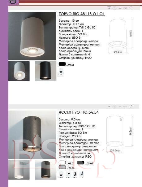Кількість ламп: 1. Тип цоколя: GU10. Висота (див): 10. Потужність лампи (Вт): 50. Діаметр (див): 5.6.