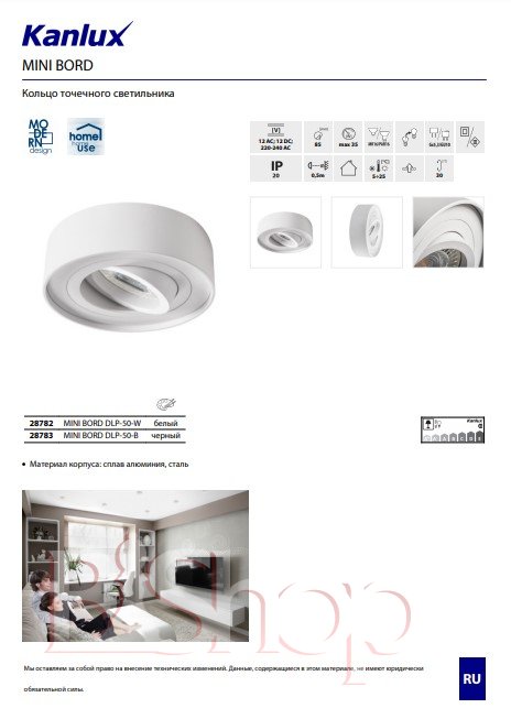 Точковий світильник Kanlux MINI BORD DLP-50-W PIER.OZDOB/KOM.OPR (28782) (25197)