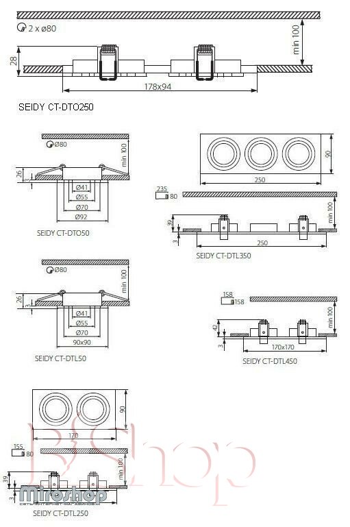 Кількість ламп: 1. Тип цоколя: GX5.3. Ширина (см): 9. Потужність лампи (Вт): 50. Довжина (див): 9. Розмір урізного отвору (див): 8.