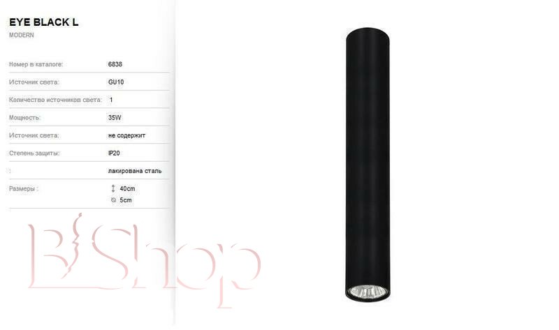 Кількість ламп: 1. Тип цоколя: GU10. Висота (див): 40. Потужність лампи (Вт): 35. Діаметр (див): 5.5.