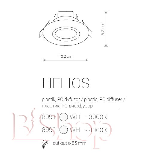 Кількість ламп: 1. Тип цоколя: LED. Потужність лампи (Вт): 5. Діаметр (див): 10.2. Глибина урізання (див): 5.2.