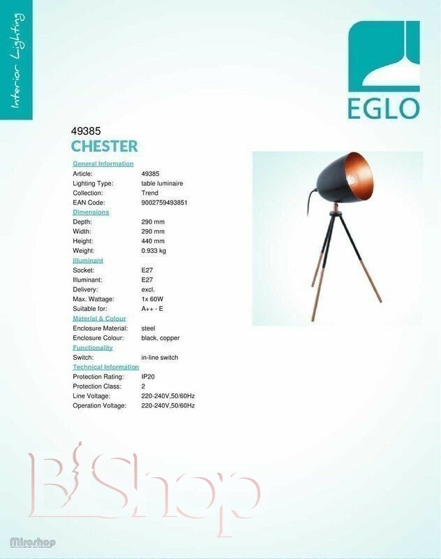 Кількість ламп: 1. Тип цоколя: E27. Висота (див): 44. Потужність лампи (Вт): 60. Діаметр (див): 29.
