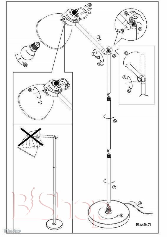 Кількість ламп: 1. Тип цоколя: E27. Висота (см): 137. Потужність лампи (Вт): 40.
