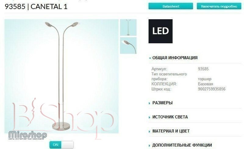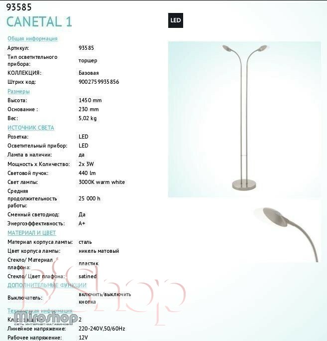 Торшер Eglo 93585 Canetal 1 (93585)