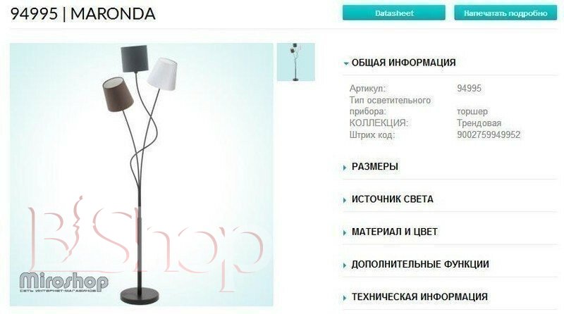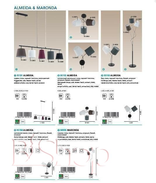 Кількість ламп: 3. Тип цоколя: E14. Висота (див): 152. Ширина (див): 3.5. Потужність лампи (Вт): 40. Довжина (див): 27.5.