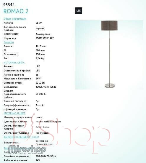 Кількість ламп: 1. Тип цоколя: LED. Висота (див): 161.5. Потужність лампи (Вт): 24. Діаметр (див): 38.